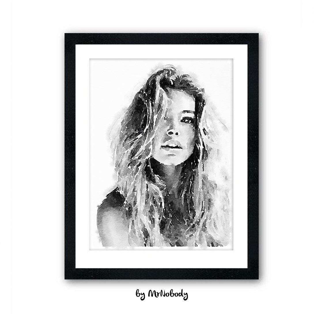 Watercolor portrait Black and White.